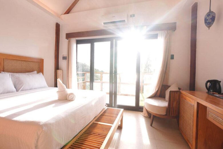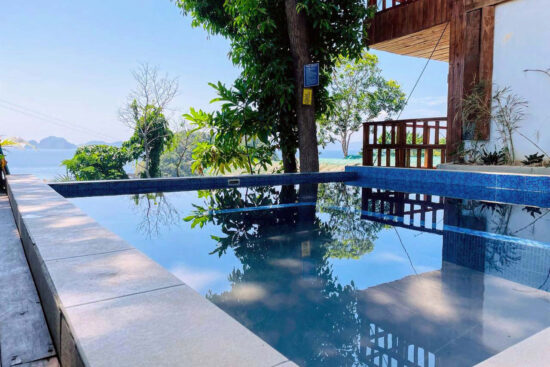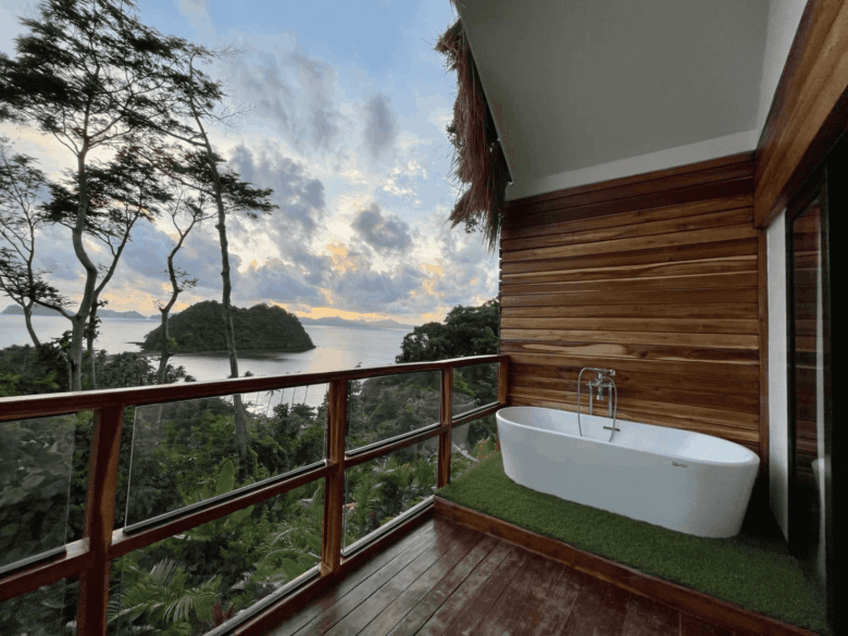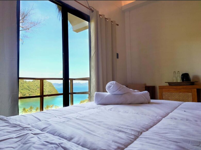 Wake up to stunning views of the Philippine Sea from your Standard room with a sea view terrace in El Nido. Enjoy panoramic vistas of turquoise waters and limestone cliffs, accompanied by gentle waves and nature sounds.